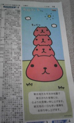 聞いてないww朝から全国区の新聞でカピバラさん拝めるなんてキイテナイwwwwwwwwwww