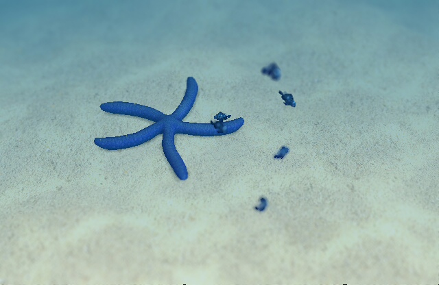 アオヒトデとミツボシクロルリスズメダイ。
